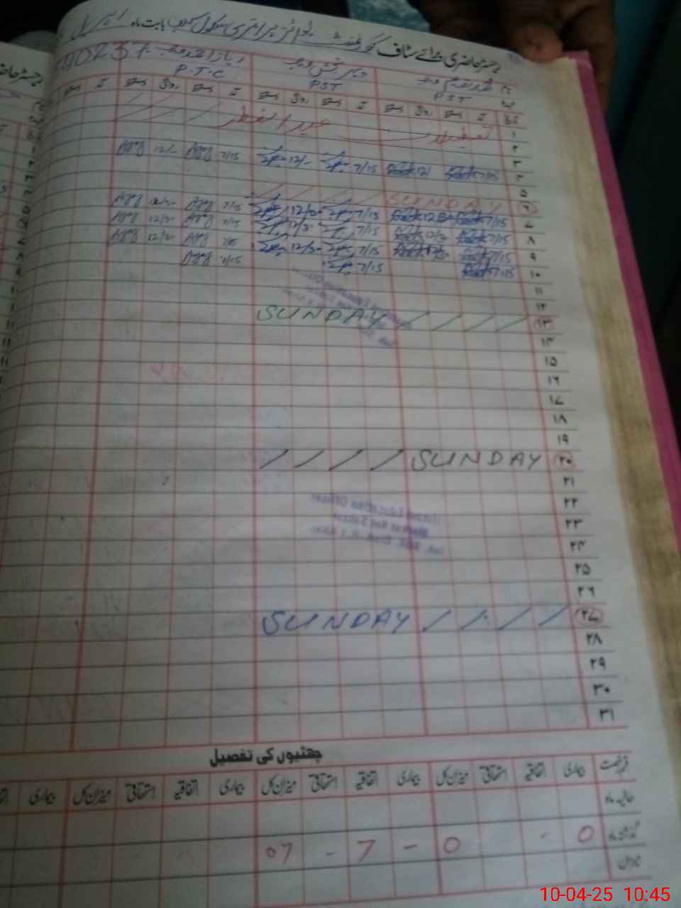 | District: RAHIMYAR KHAN | Tehsil: SADIQABAD | Markaz: KOT SABZAL - MALE | Level: Primary | |