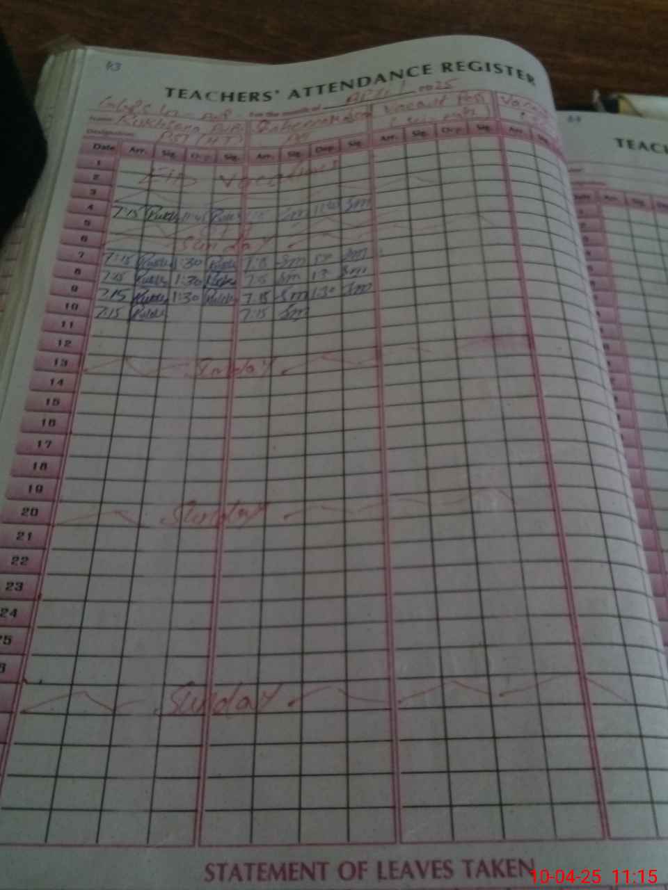 | Name: RU**** Designation: (School Headmaster's/Headmistress's) PST Phone/Cell Number: 03**** |