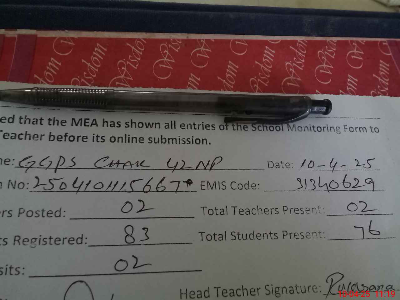 | EMIS Code: 31340629 | Name of School: GGPS CHAK 42/NP | |||