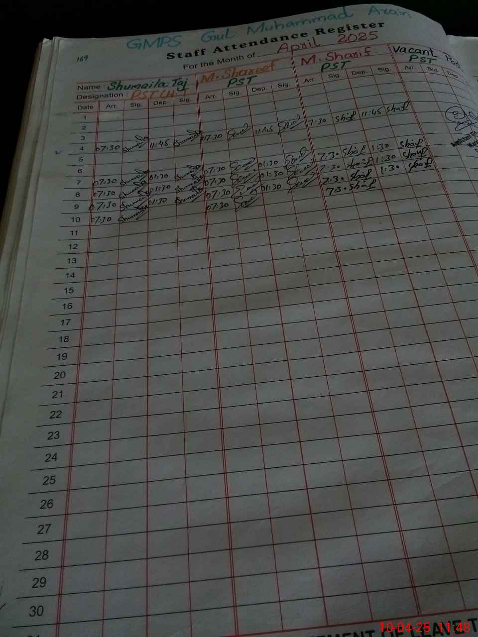 | Name: Sh**** Ta**** Designation: (School Headmaster's/Headmistress's) PST Phone/Cell Number: 03**** |