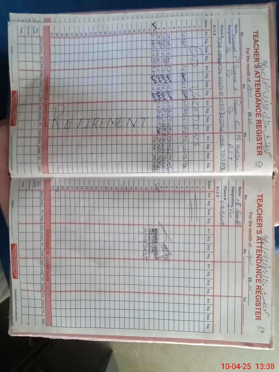 | Name: MU**** PA**** Designation: (School Headmaster's/Headmistress's) PST Phone/Cell Number: 03**** |