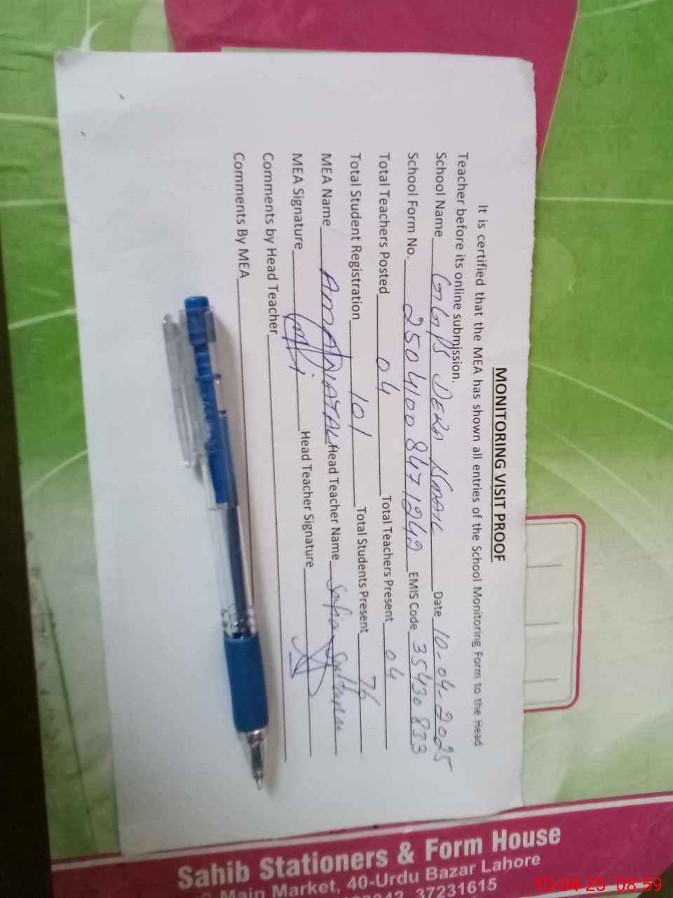 | EMIS Code: 35430833 | Name of School: GGPS DERA MASTER ISMAIL | |||