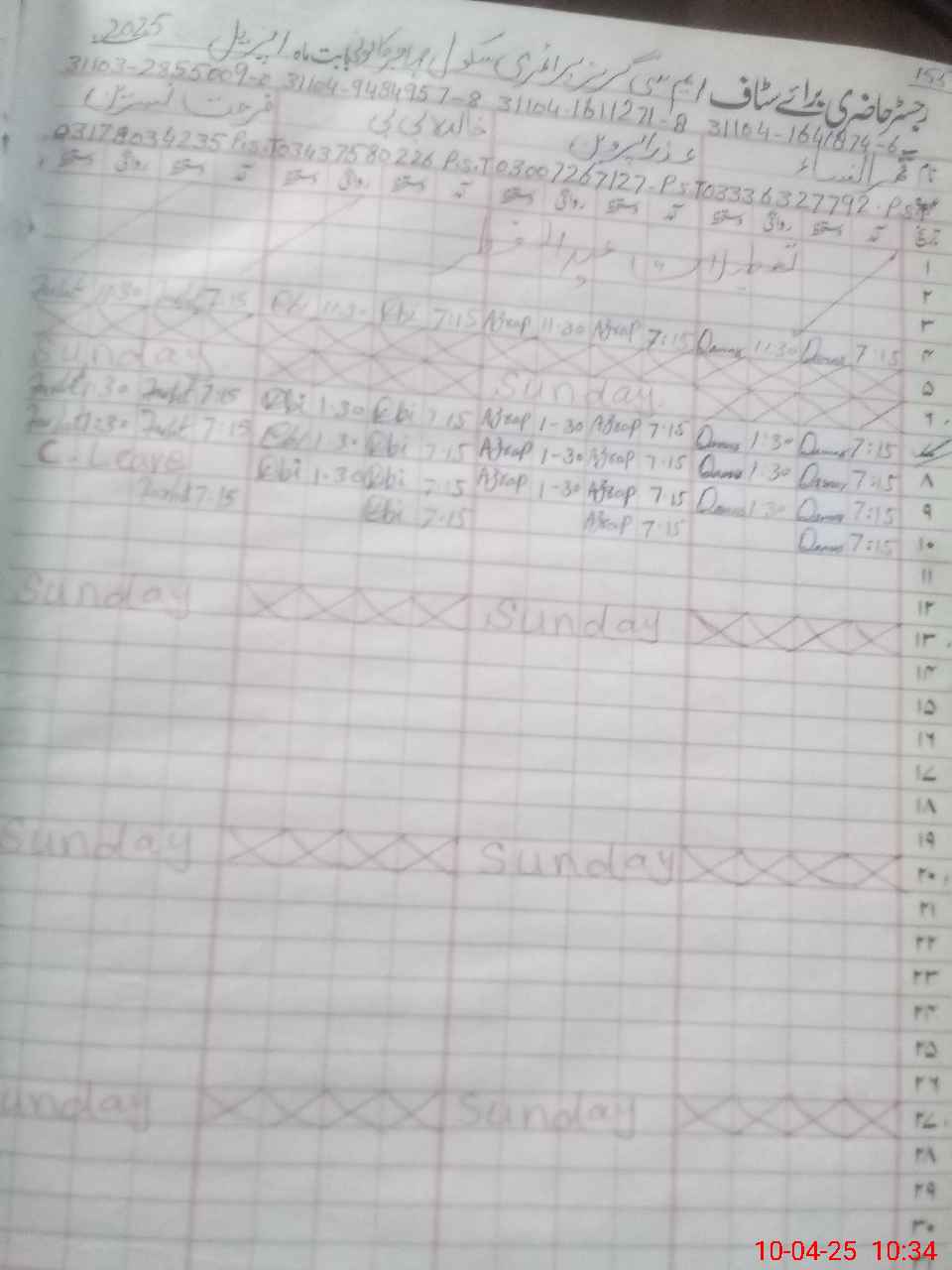 | CNIC | Full Name | Designation | R/C | Absence During Last Calender Month |