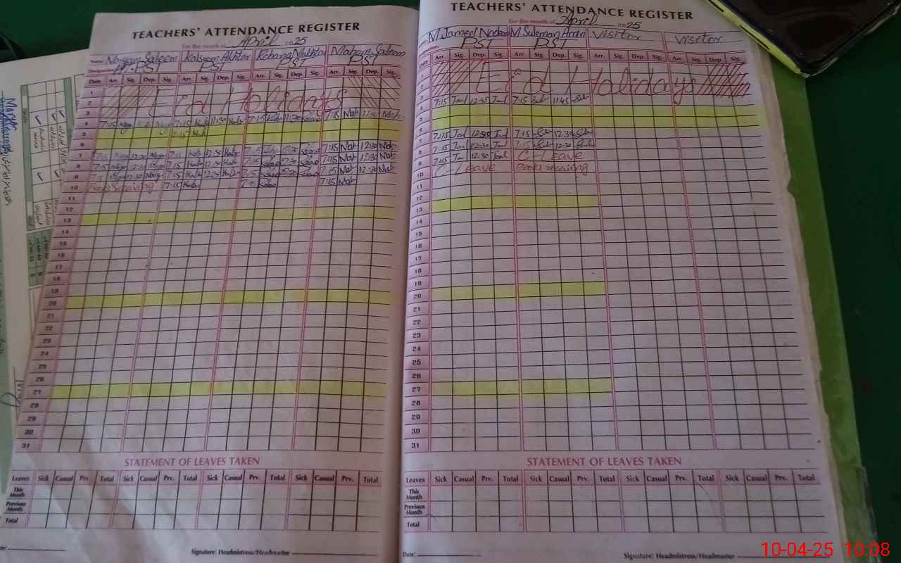 | Attendance Register | Head Teacher | MEA with School | Visit Proof |