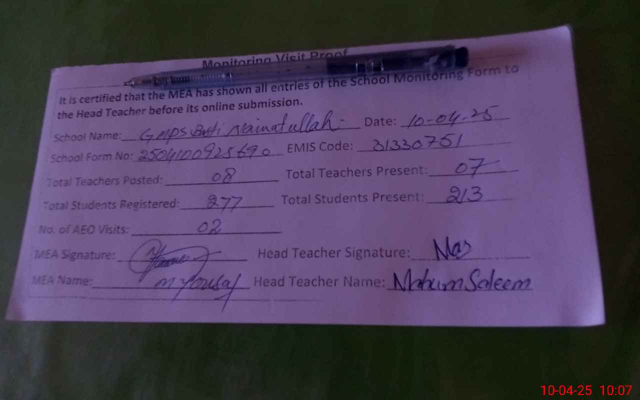 | EMIS Code: 31330751 | Name of School: GMPS BASTI NAMAT TULLAH | |||