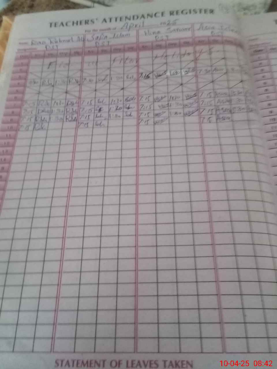 | CNIC | Full Name | Designation | R/C | Absence During Last Calender Month |