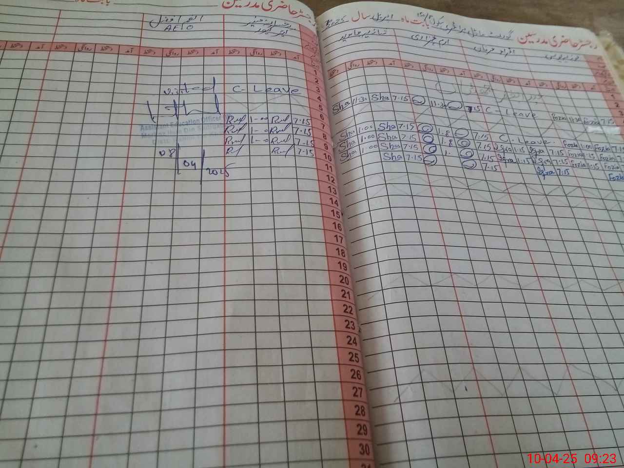 | CNIC | Full Name | Designation | R/C | Absence During Last Calender Month |