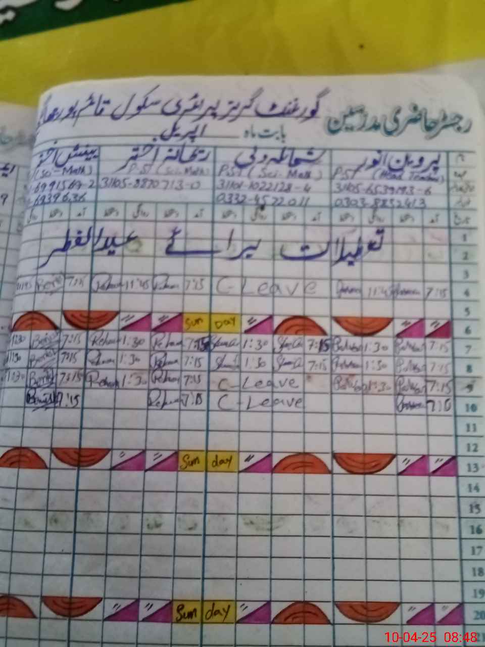 | Name: Sh**** Wa**** Designation: (School Headmaster's/Headmistress's) PST Phone/Cell Number: 03**** |