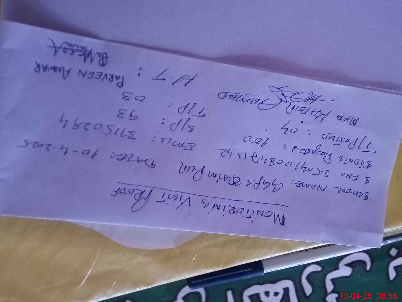 | Monitoring Date: 10-04-2025 | Start Time: 10-04-2025 08:24 AM | End Time: 10-04-2025 09:00 AM | Name of MEA: Ka**** Ah**** Sh**** BN**** | |