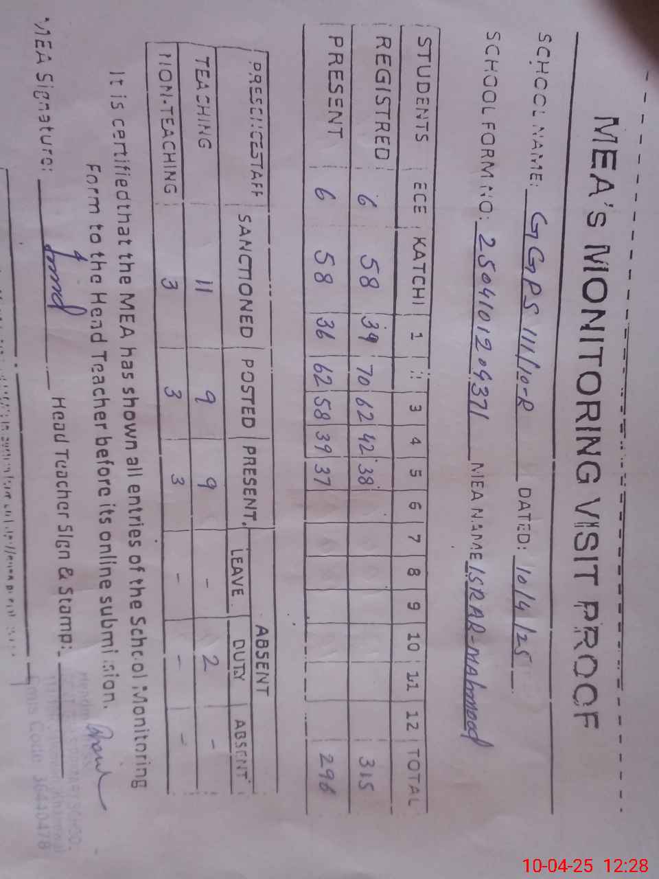 | EMIS Code: 36440478 | Name of School: GGPS 111/10-R, JAHANIAN | |||
