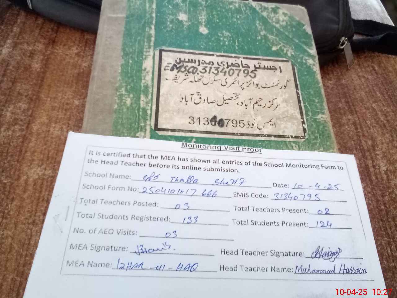| EMIS Code: 31340795 | Name of School: GPS THALLA SHARIF | |||