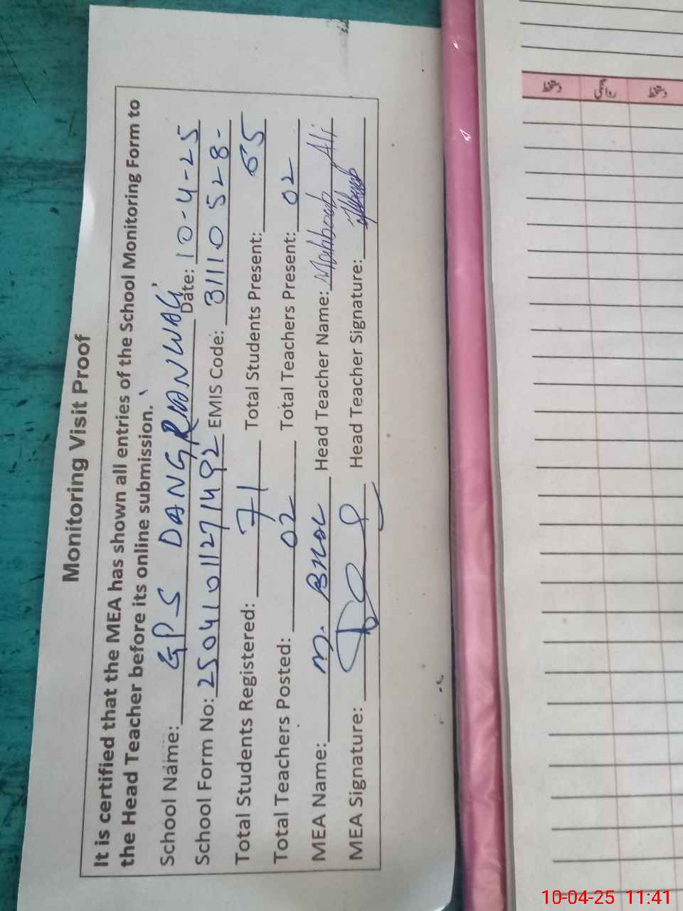 | EMIS Code: 31110528 | Name of School: GPS DANGRIAN WALI | |||
