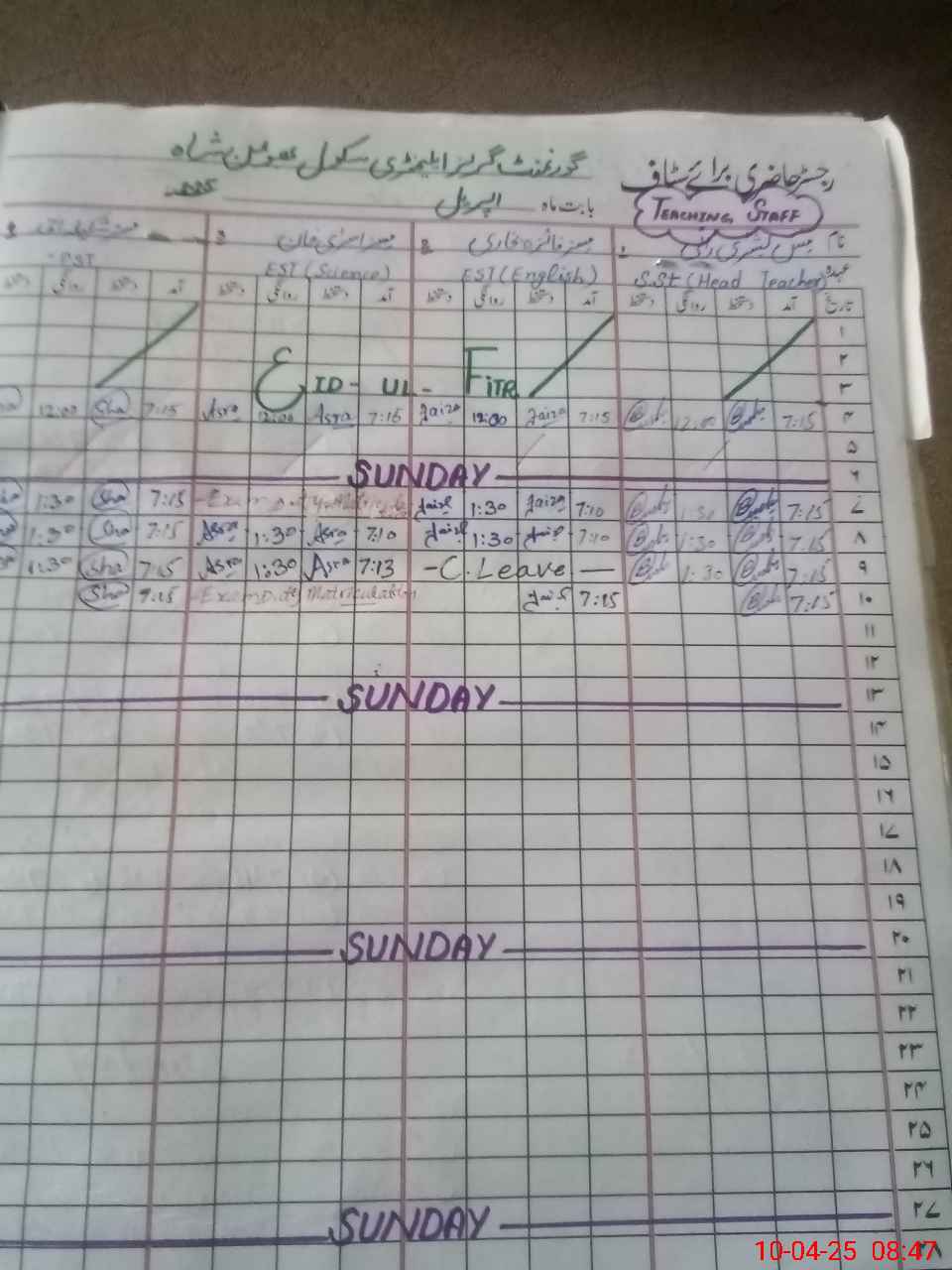 | 36**** | Ha**** As**** Kh**** | EST | Regular | 0 | 0 | 0 | 0 | 0 | 0 | 0 | 0 | 0 | Exam Duty |