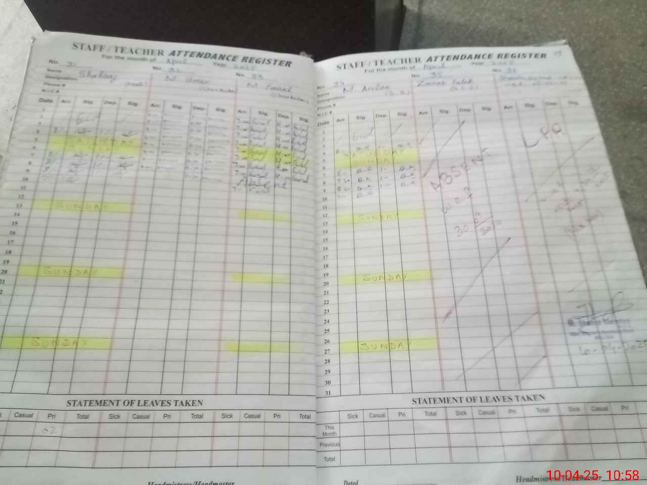 | 36**** | Sh**** Ka**** | PST | Regular | 0 | 0 | 0 | 0 | 0 | 0 | 0 | 0 | 0 | Exam Duty |