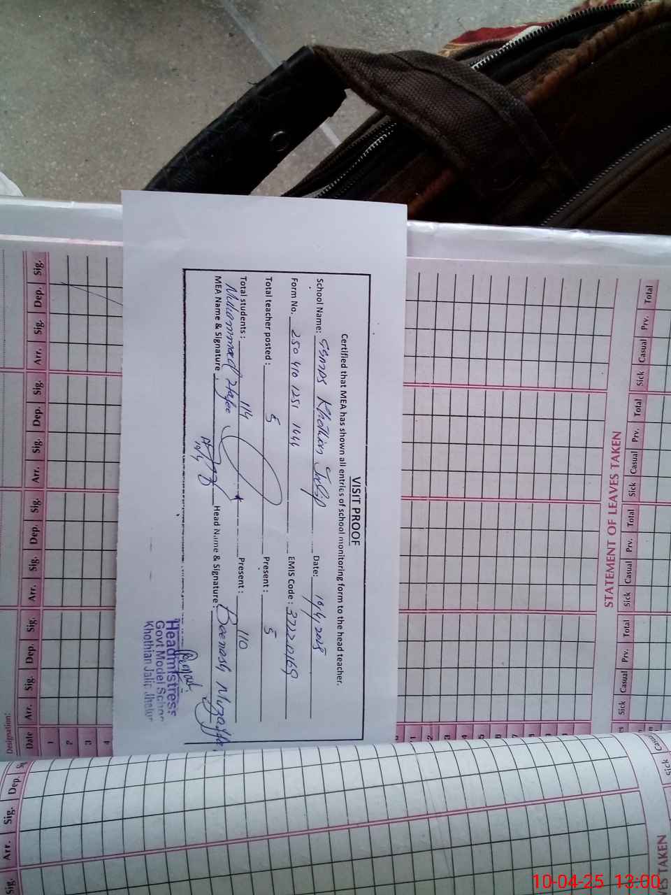 | Remarks (Use Separate Page if Required): Sir GGMPS September 2023 to Mar 2025 FTF data totally uncompleted record only written on paper Pictures of uncomplete register is available Classes are sitting on ground | |||||