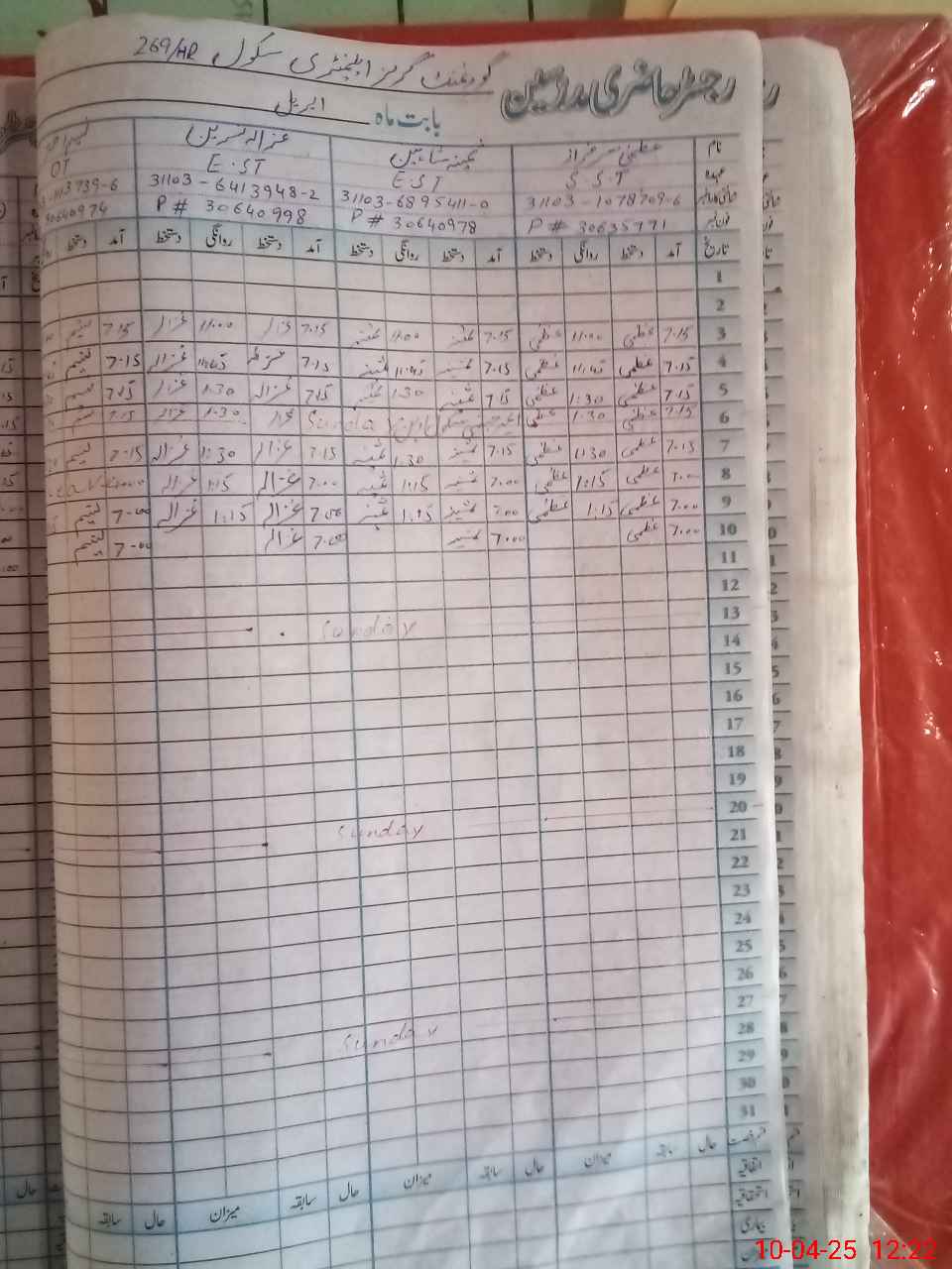 | CNIC | Full Name | Designation | R/C | Absence During Last Calender Month |