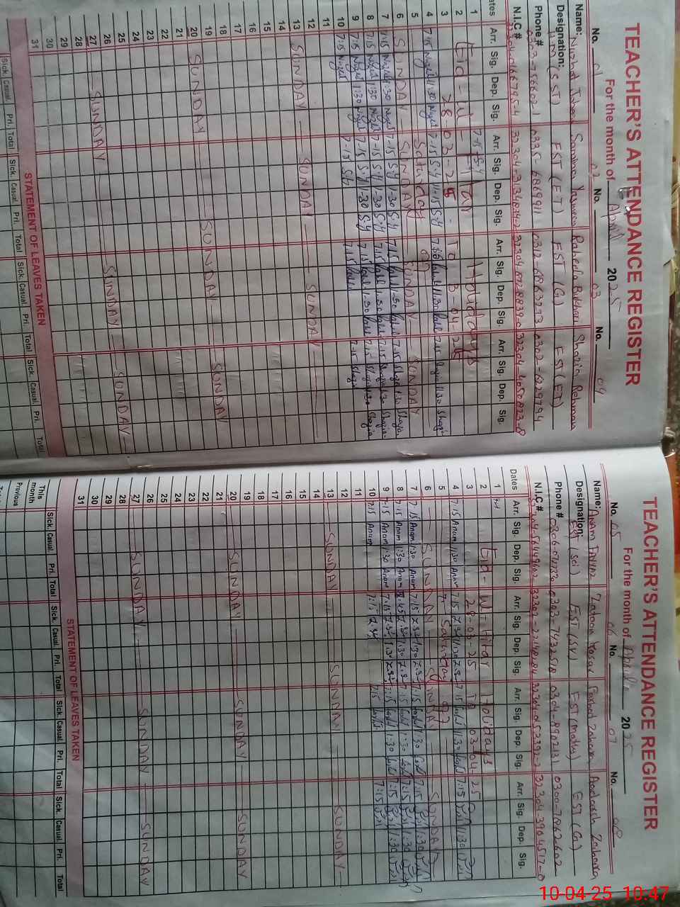 | Name: NU**** JA**** Designation: (School Headmaster's/Headmistress's) S.S.T.(Sc) Phone/Cell Number: 03**** |