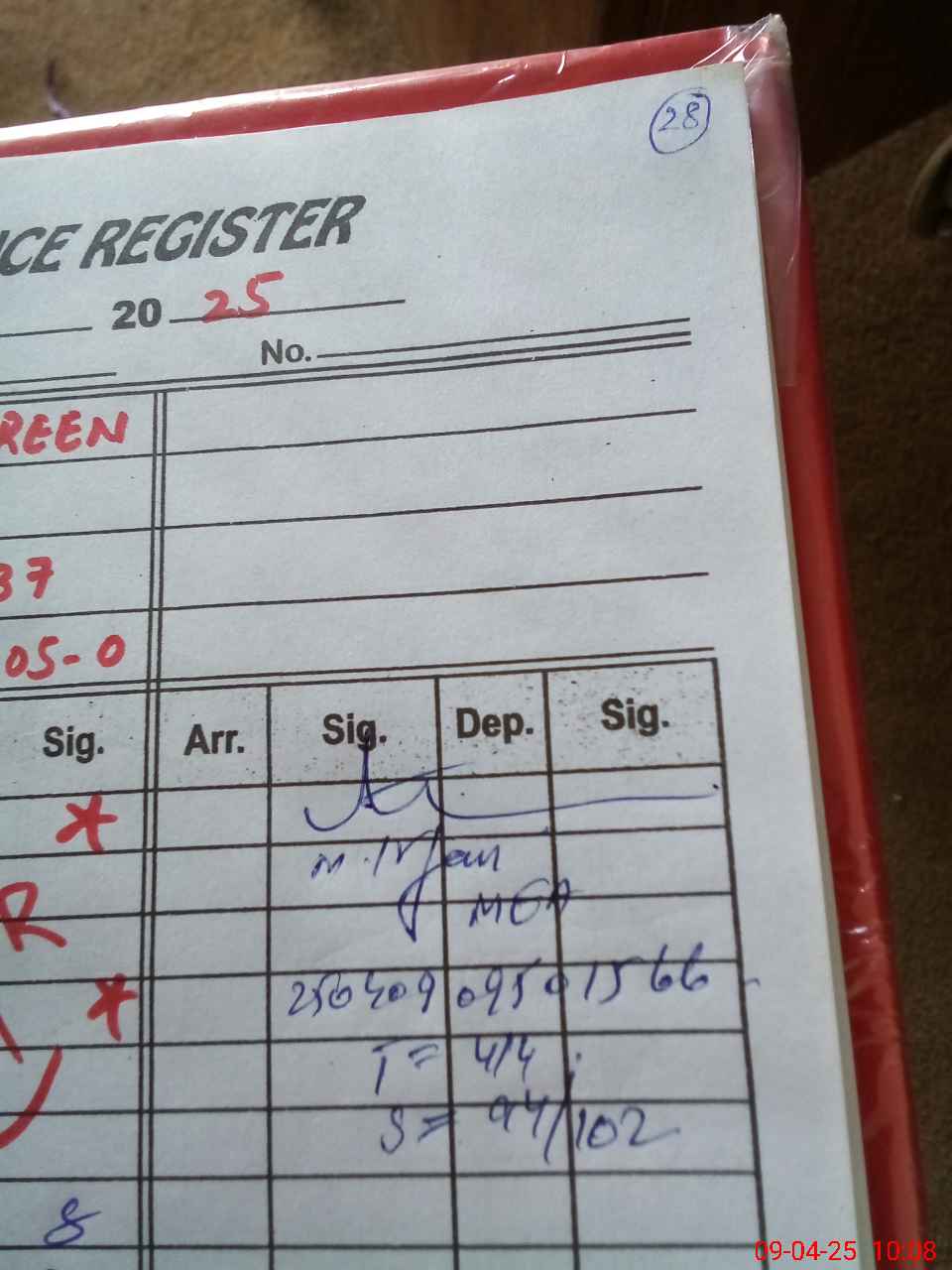 | Monitoring Date: 09-04-2025 | Start Time: 09-04-2025 09:50 AM | End Time: 09-04-2025 10:09 AM | Name of MEA: MU**** IR**** UDDI**** | |