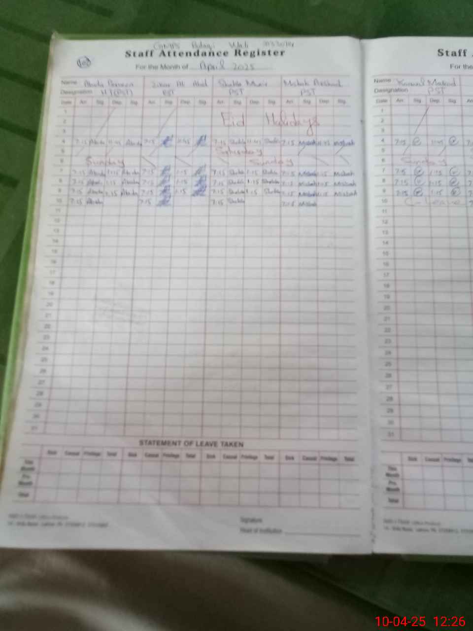 | 31**** | Ka**** Ma**** | PST | Regular | 2 | 0 | 0 | 0 | 0 | 0 | 0 | 0 | 2 | Casual |
