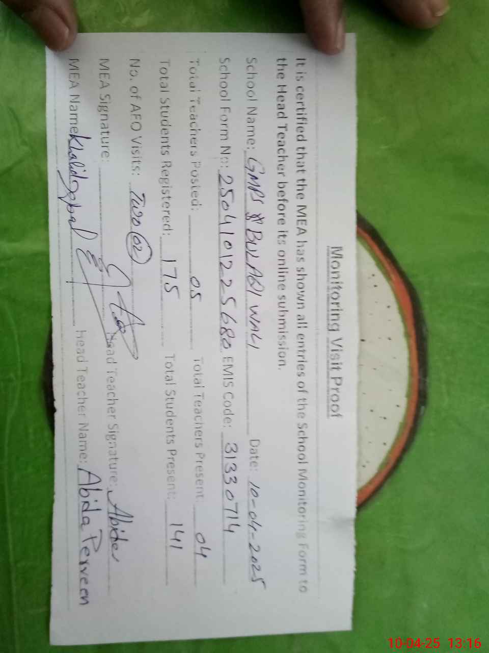 | EMIS Code: 31330714 | Name of School: GMPS BULAQI WALI | |||