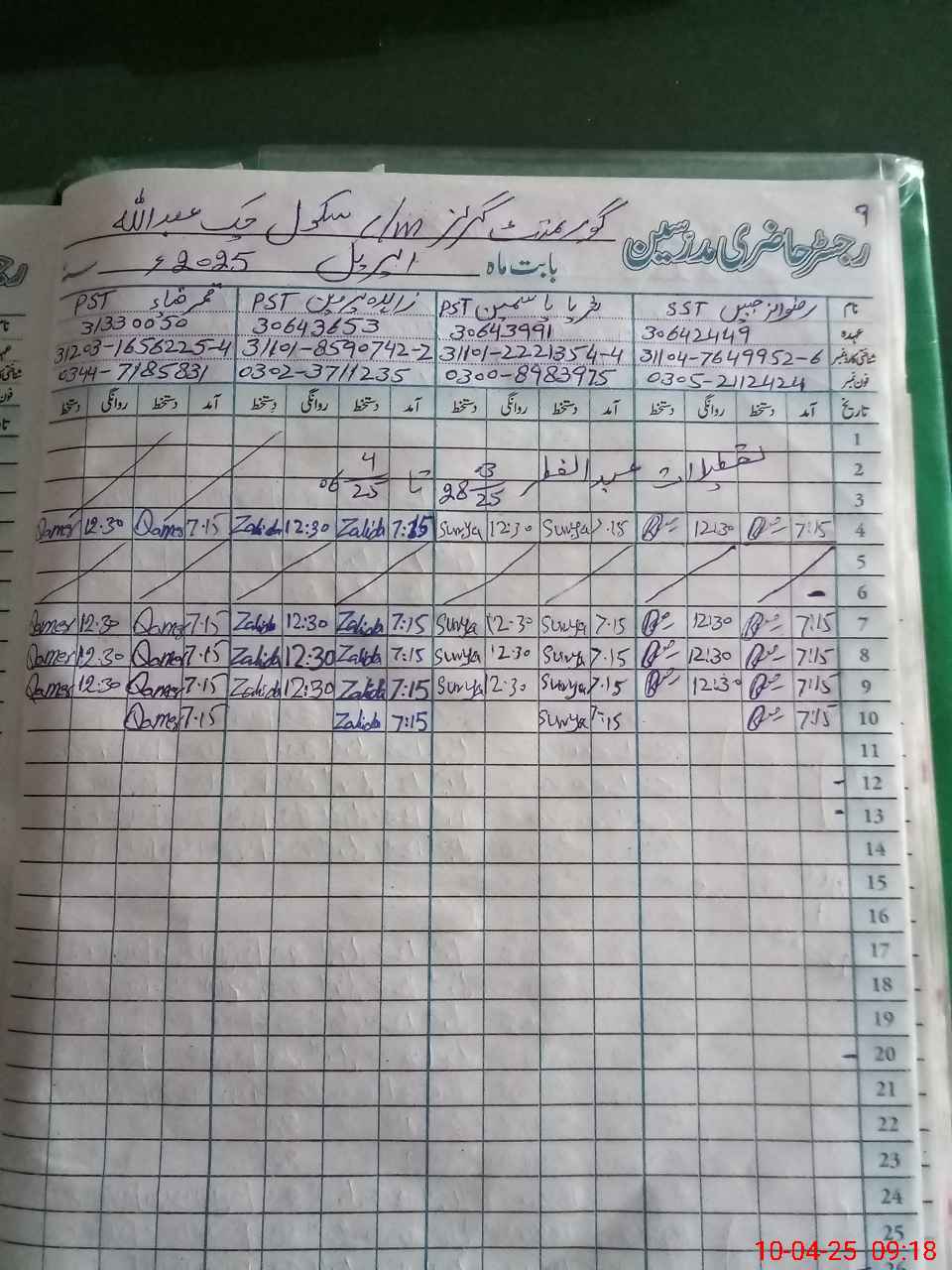 | Name: RI**** JA**** Designation: (School Headmaster's/Headmistress's) SST Phone/Cell Number: 03**** |