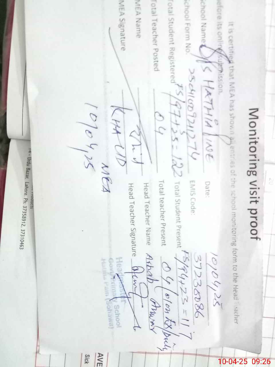 | EMIS Code: 37230086 | Name of School: GPS HATHIA PINE | |||