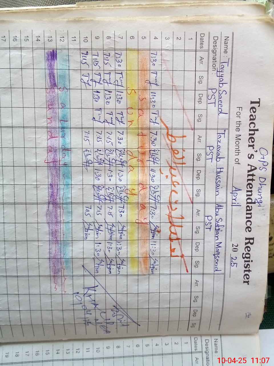 | CNIC | Full Name | Designation | R/C | Absence During Last Calender Month |