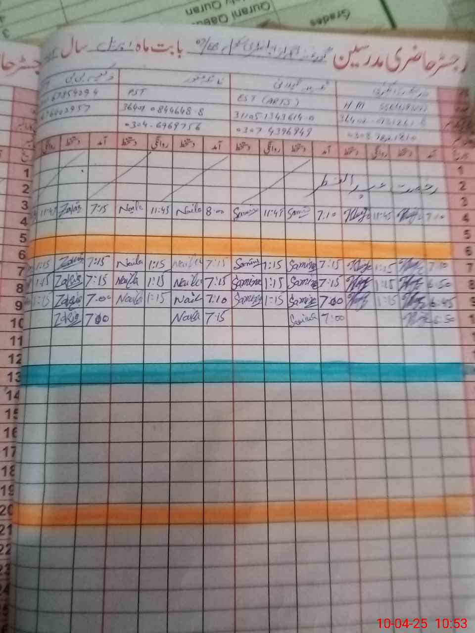 | CNIC | Full Name | Designation | R/C | Absence During Last Calender Month |
