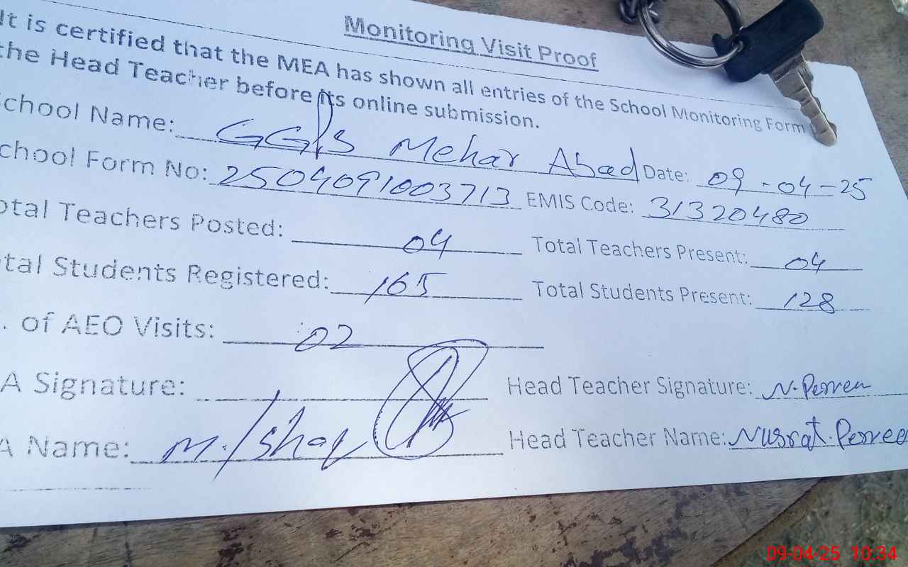| EMIS Code: 31320480 | Name of School: GGPS MEHAR ABAD KACHI MANDI | |||