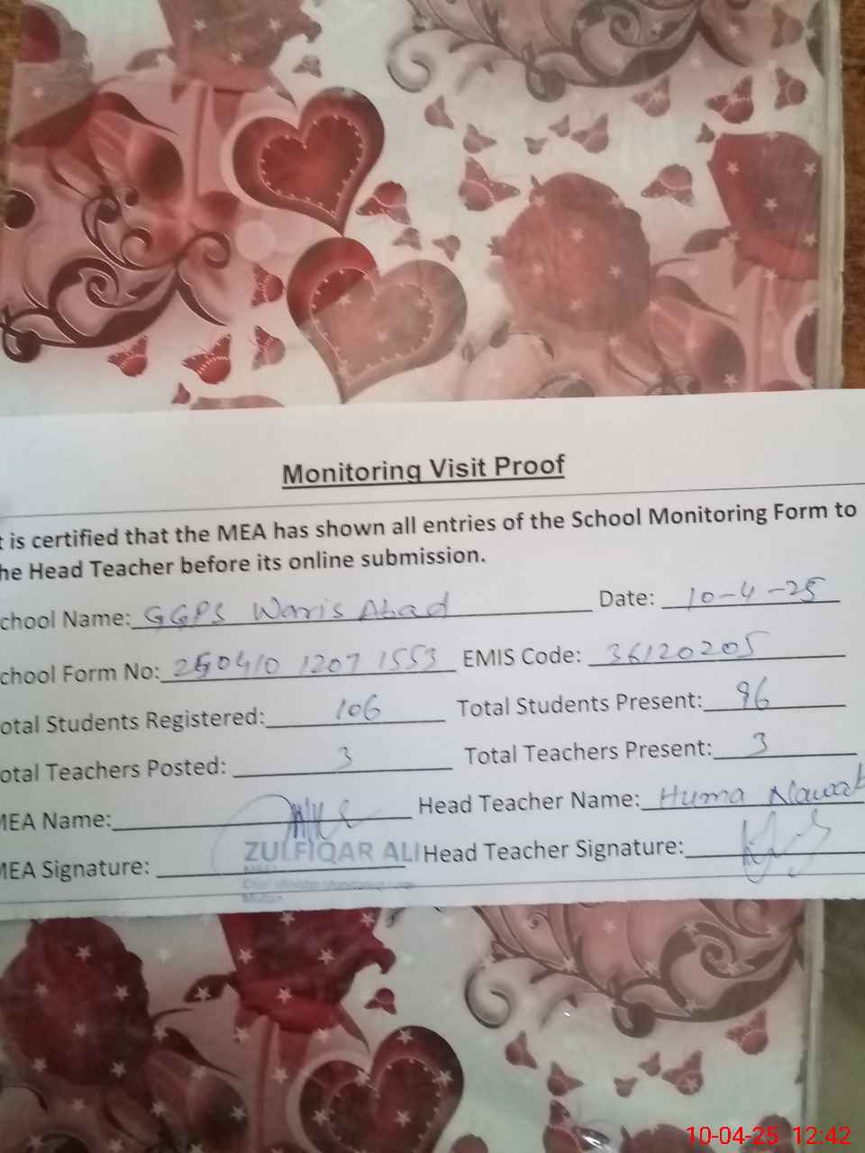 | EMIS Code: 36120205 | Name of School: GGPS WARIS ABAD WARIS ABAD SHUJABAD | |||