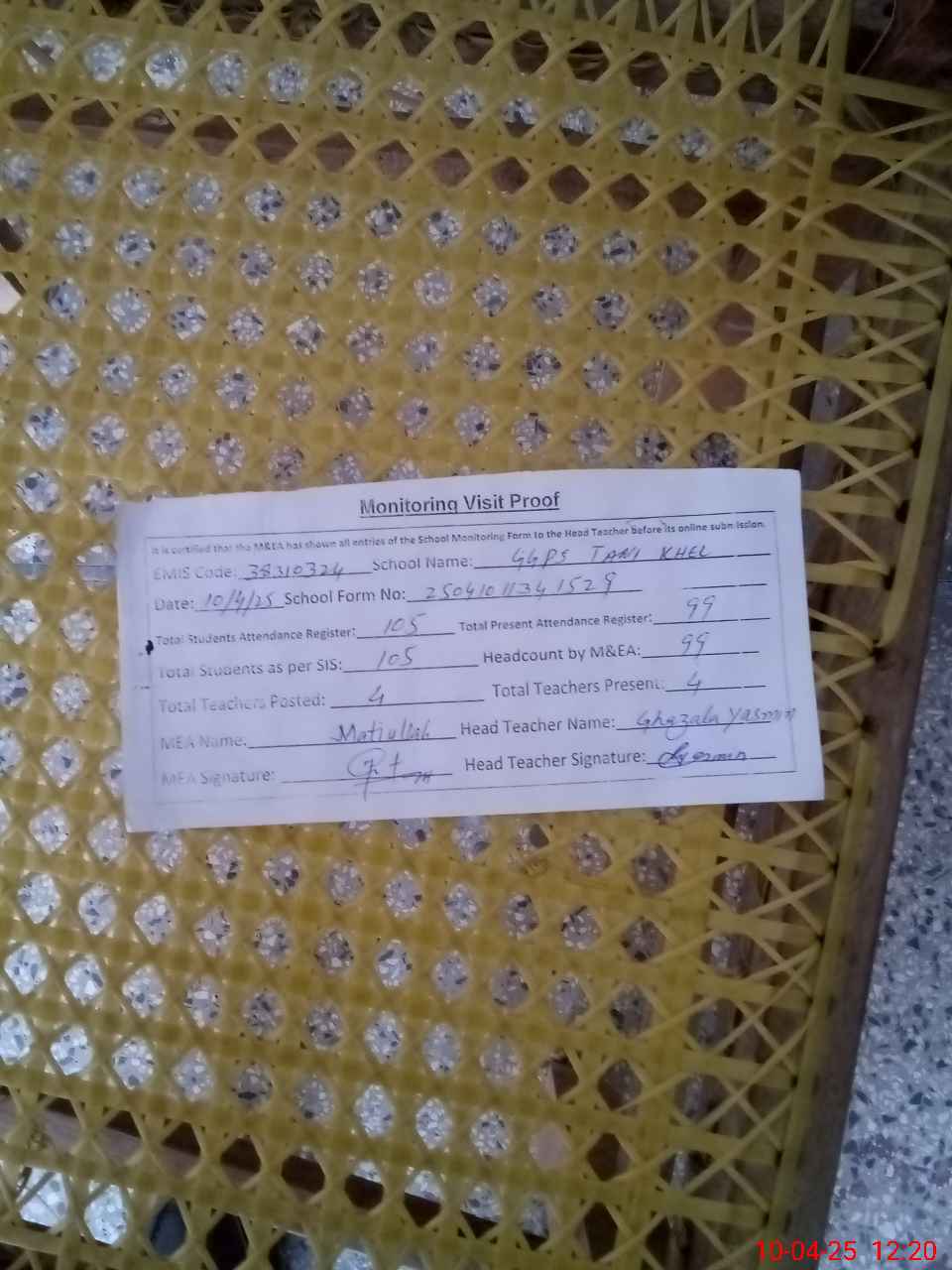 | EMIS Code: 38310324 | Name of School: GGPS TANI KHEL | |||