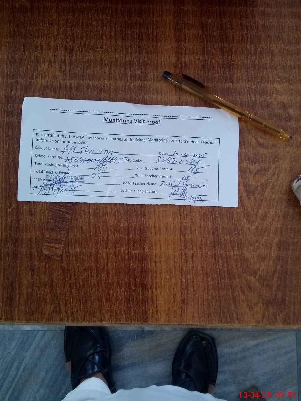 | EMIS Code: 32320286 | Name of School: GPS CHAK NO.540 TDA | |||