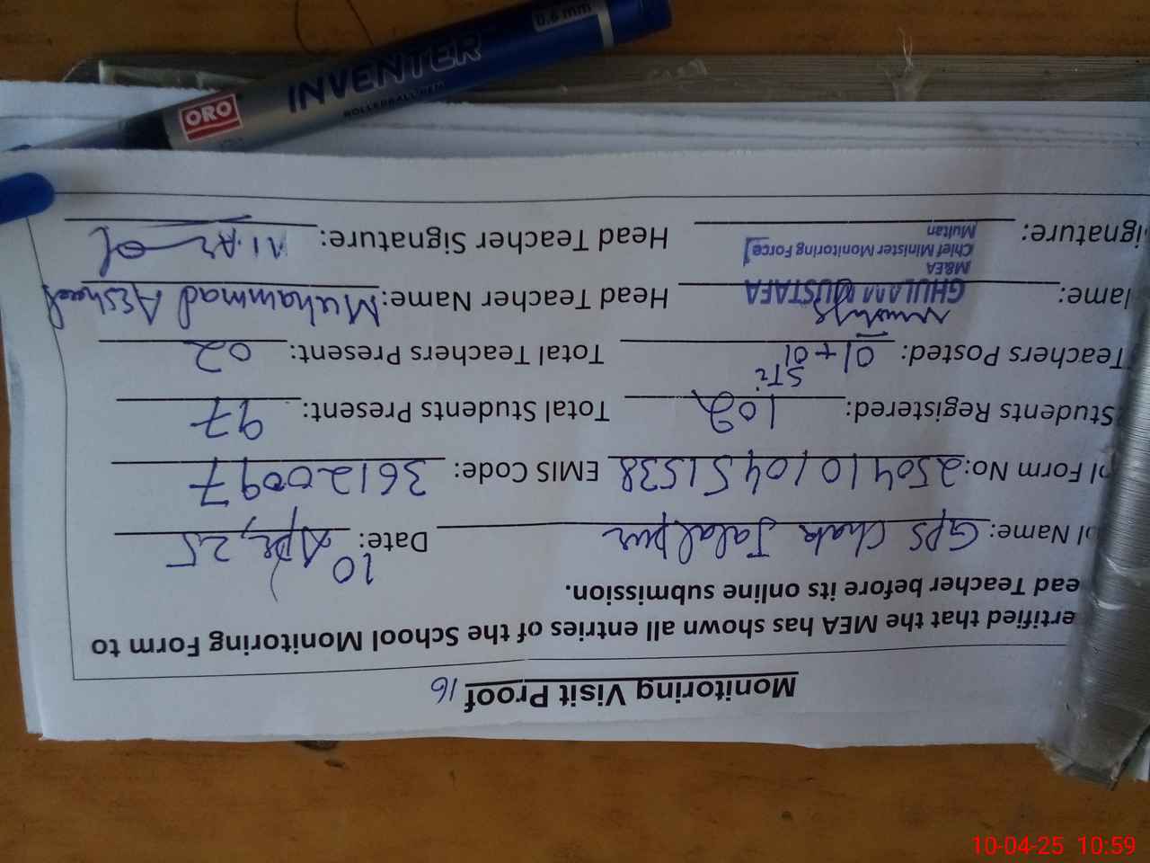 | EMIS Code: 36120097 | Name of School: GPS CHAK JALALPUR P/O JALAL PUR KHAKI | |||