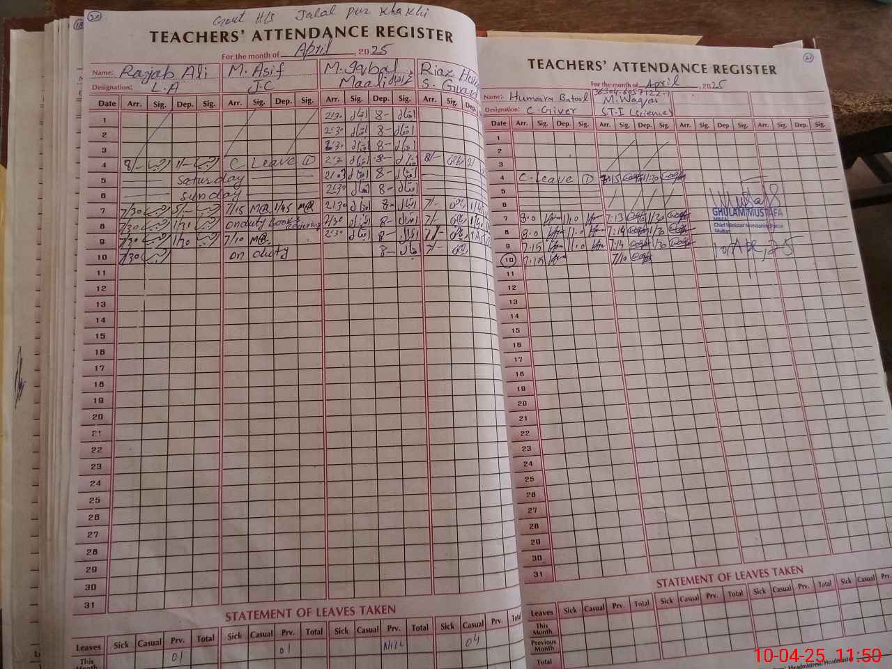 | 36**** | Kh**** So**** Sa**** | PST | Regular | 0 | 0 | 0 | 0 | 0 | 0 | 0 | 0 | 0 | Exam Duty |