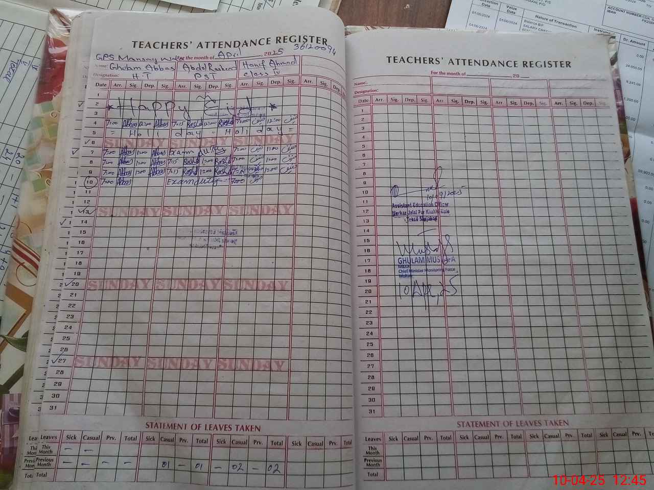 | 36**** | Ab**** Ra**** | PST | Regular | 0 | 0 | 0 | 0 | 0 | 0 | 0 | 0 | 0 | Exam Duty |
