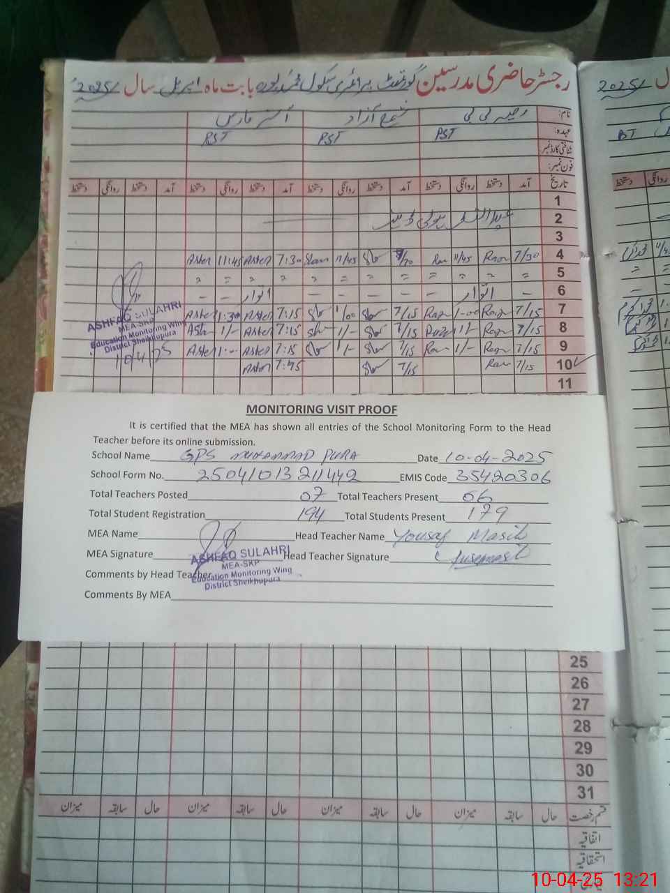 | EMIS Code: 35420306 | Name of School: GPS MUHAMMAD PURA | |||