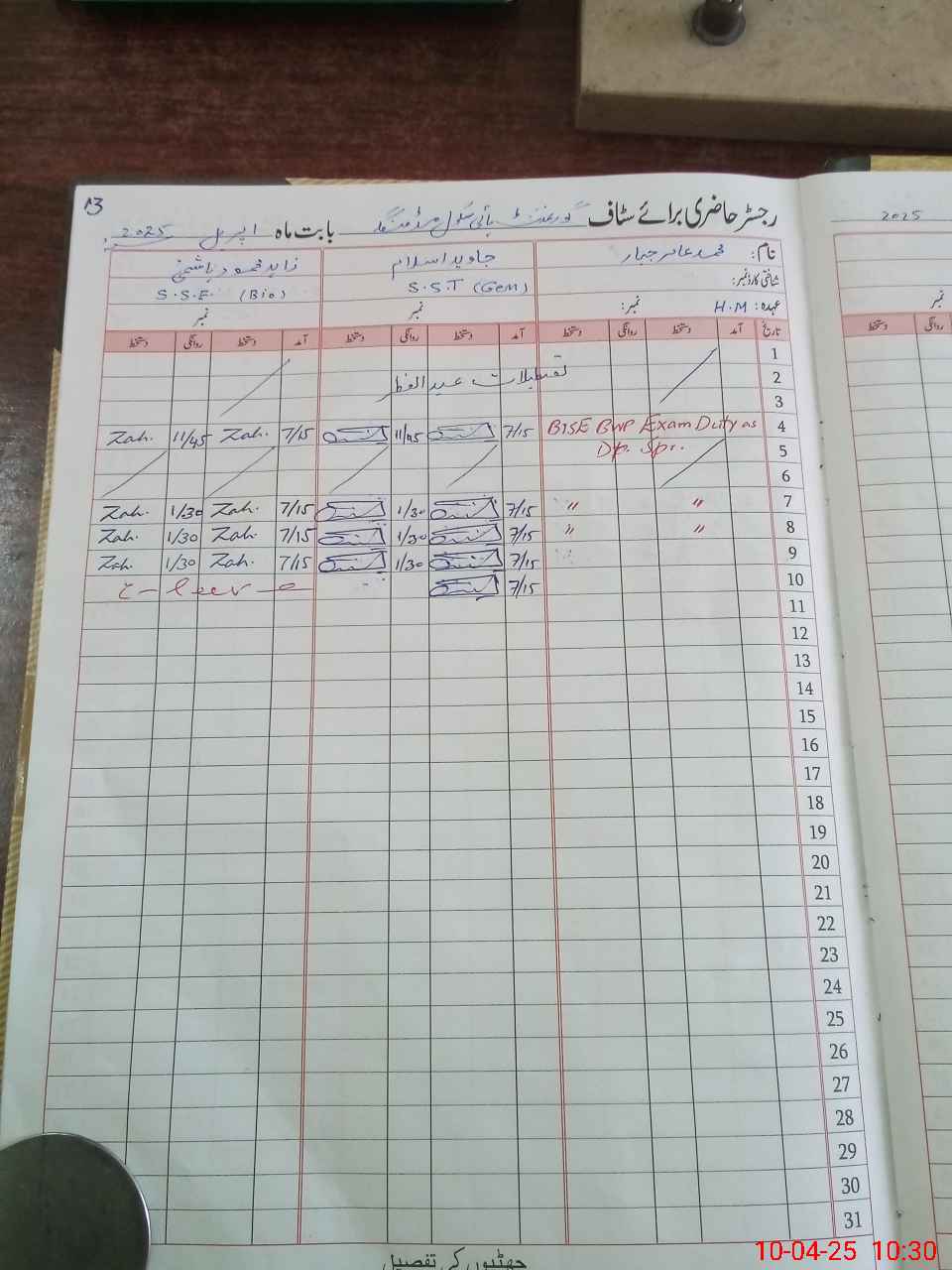 | 31**** | Mu**** Aa**** Ja**** | Regular | 0 | 0 | 0 | 0 | 0 | 0 | 0 | 0 | 0 | Exam Duty | |