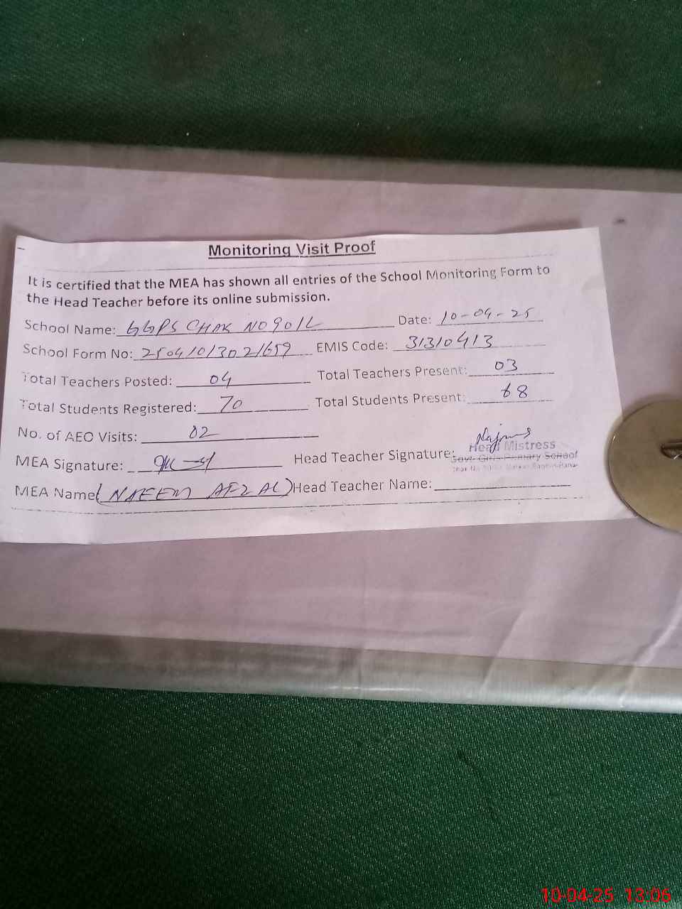 | EMIS Code: 31310413 | Name of School: GGPS CHAK NO.90/1-L (After Noon) | |||