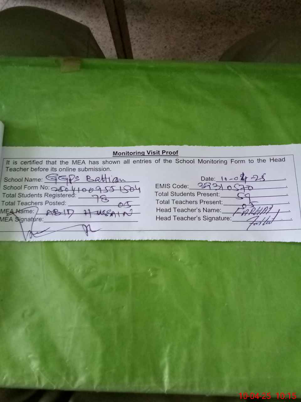 | Certified that this School was Inspected by the Undersigned MEA/DMO Today and the Information Stated Above is as Per Record. | |||||