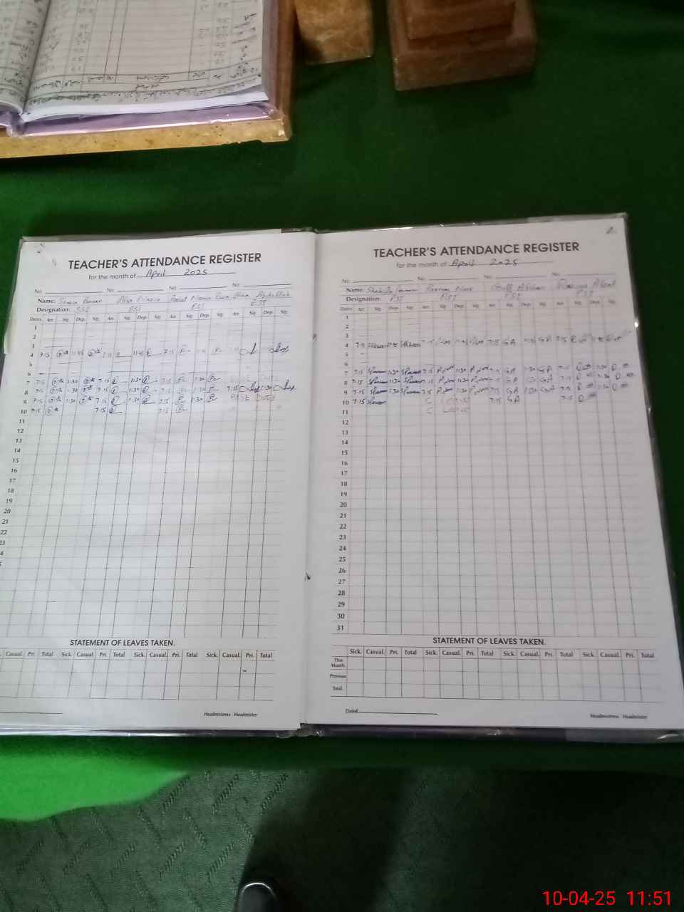 | Leave | Duty | Absent | Maternity | Medical | Ex- Pak |