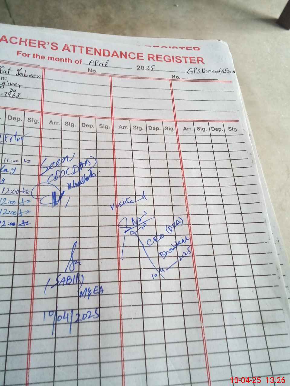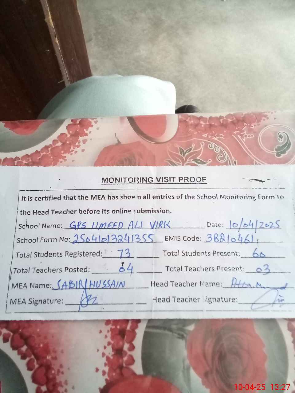 | EMIS Code: 38210461 | Name of School: GPS UMEED ALI VIRK | |||