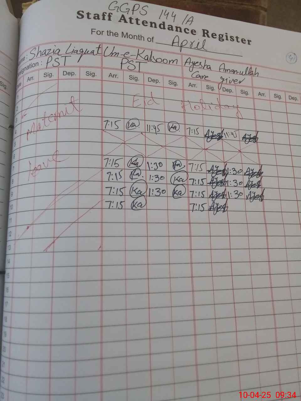 | Leave | Duty | Absent | Maternity | Medical | Ex- Pak |
