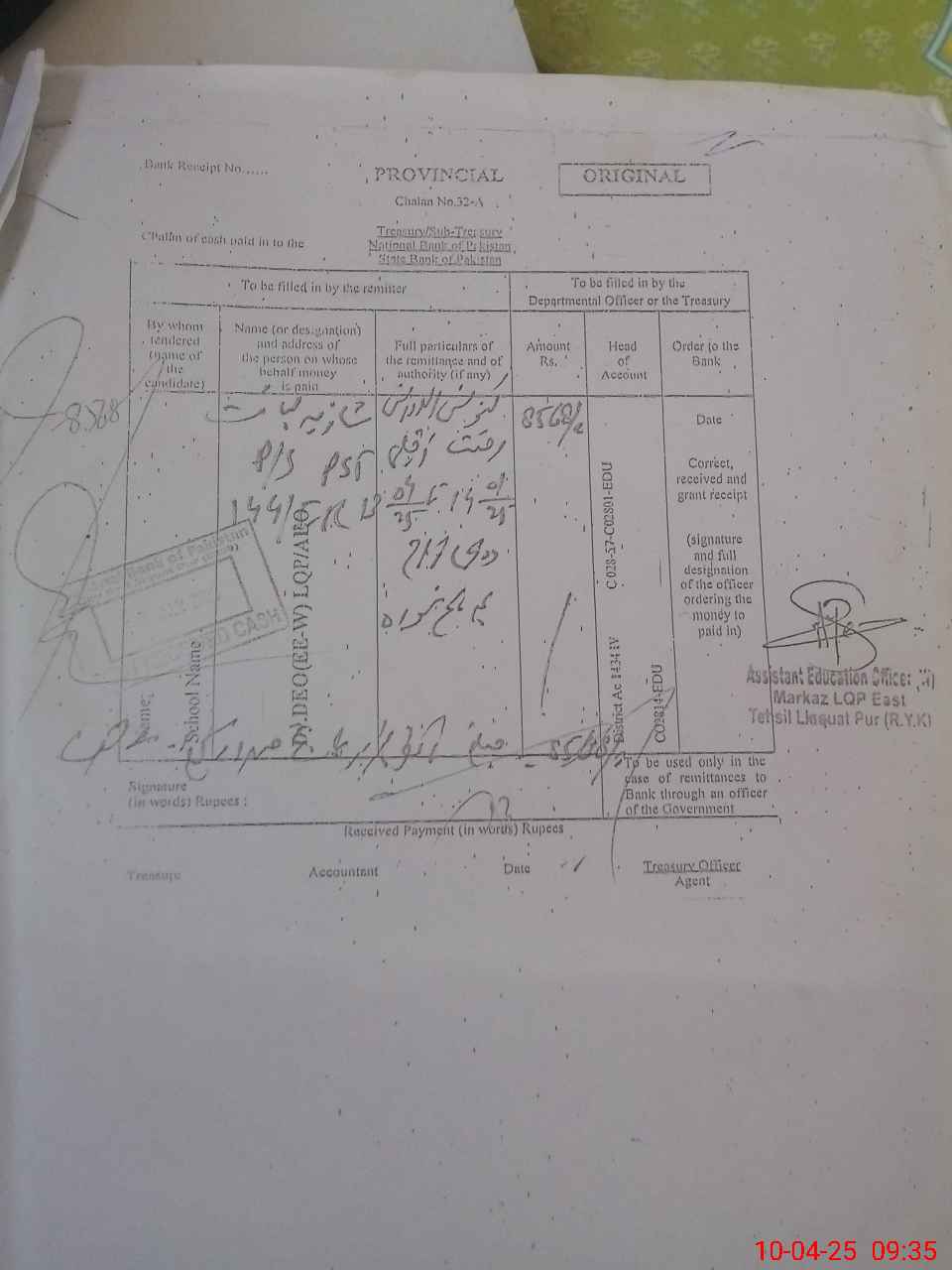 | Name: SH**** LI**** Designation: (School Headmaster's/Headmistress's) PST Phone/Cell Number: 03**** |