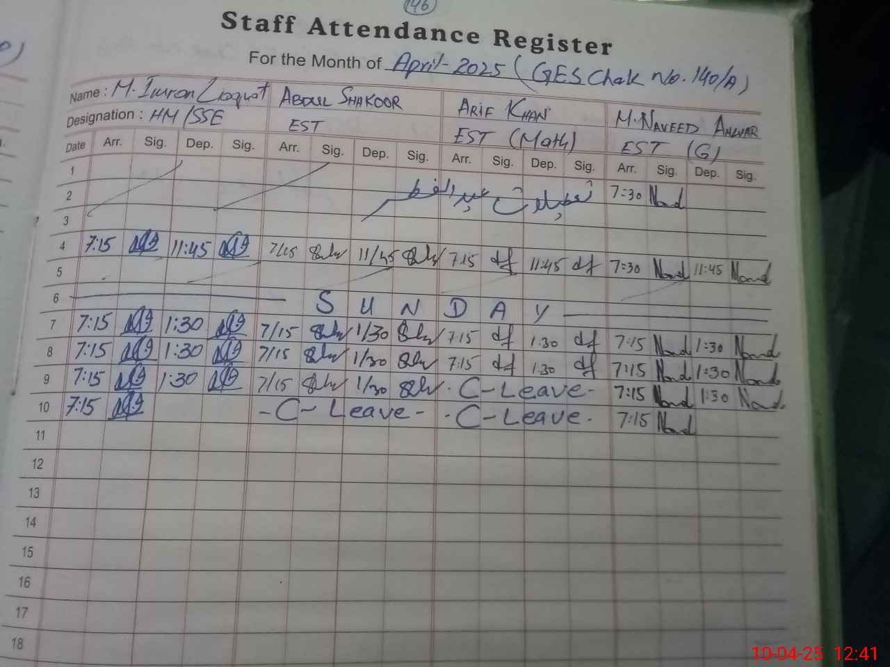 | 31**** | Mu**** Za**** Ak**** | 1 | 1 | 0 | 0 | 0 | 0 | 0 | 0 | 0 | 0 | 0 | Exam Duty |