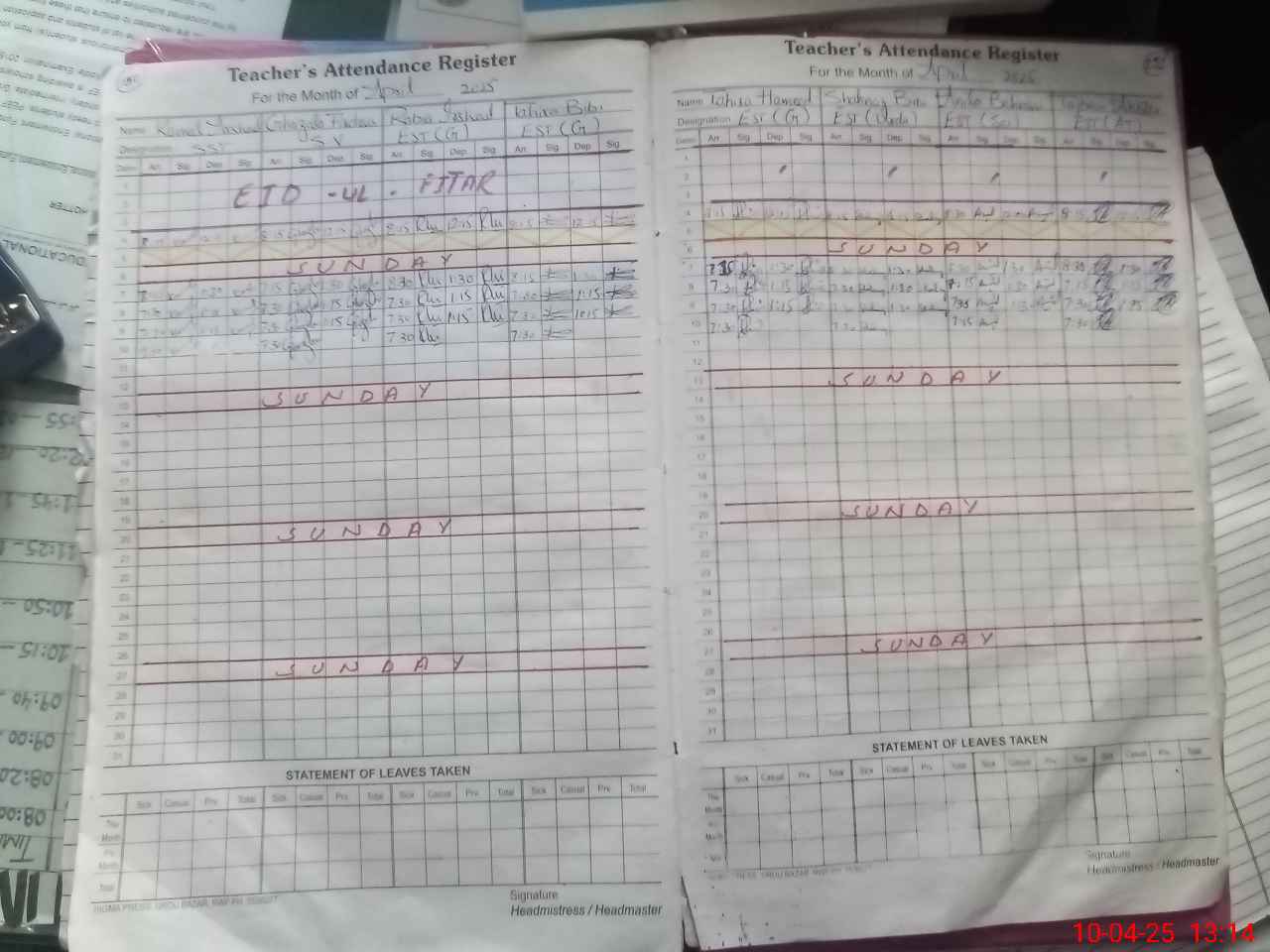 | 37**** | Sh**** Za**** | PST | Regular | 0 | 21 | 0 | 0 | 0 | 0 | 0 | 0 | 0 | Exam Duty |