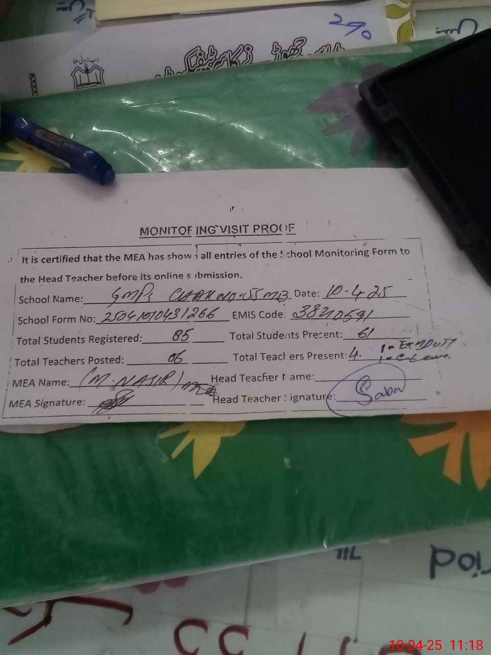 | EMIS Code: 38210591 | Name of School: GMPS CHAK NO. 55 MB | |||