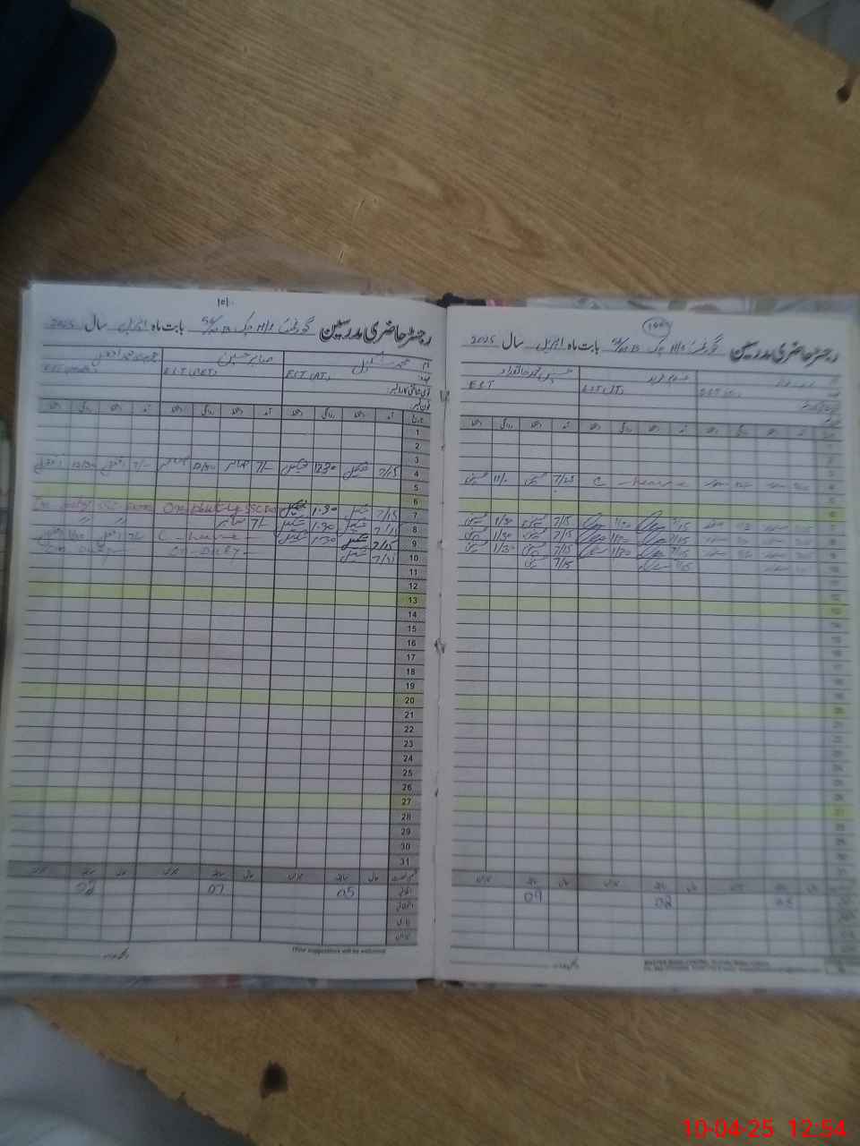 | CNIC | Full Name | Designation | R/C | Absence During Last Calender Month |