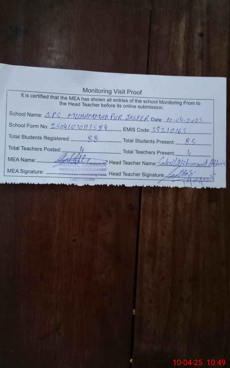 | EMIS Code: 39210163 | Name of School: GPS MUHAMMAD PUR JAGEER PO PAKPATTAN | |||