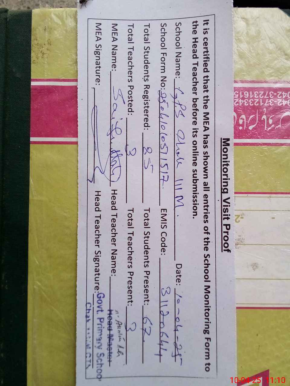 | EMIS Code: 31120644 | Name of School: GPS CHAK 111/M | |||