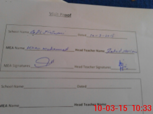 | Attendance Register | Head Teacher | MEA with School | Visit Proof |